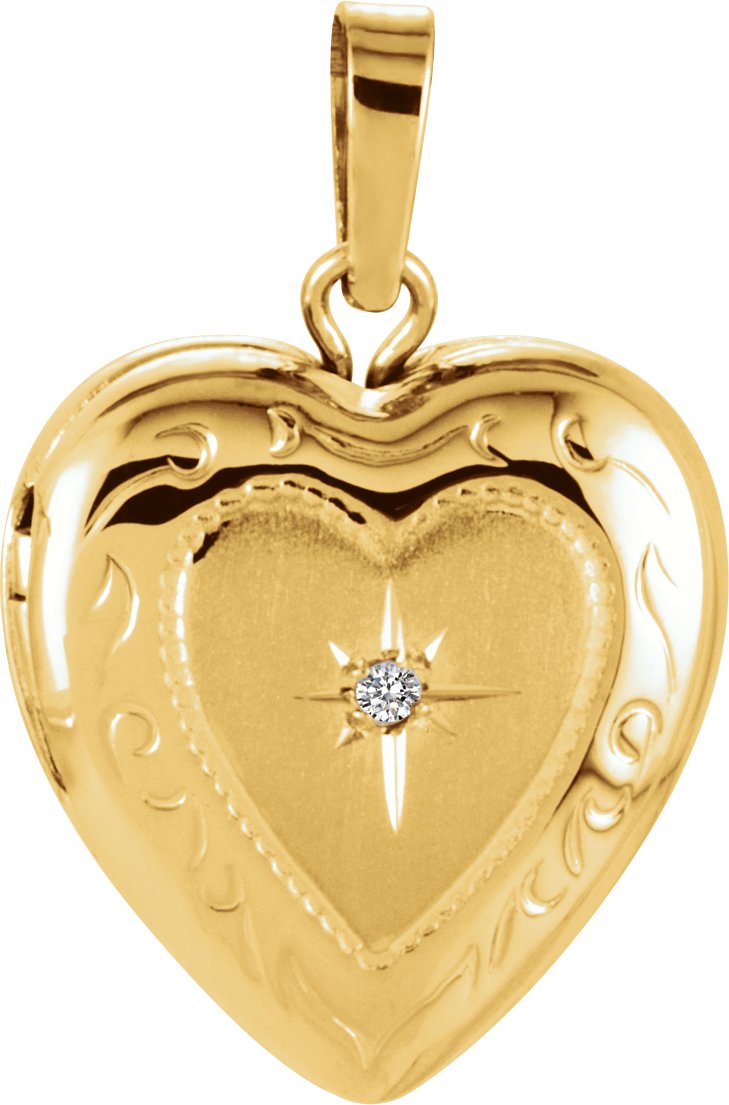 14K Yellow .005 CT Diamond Heart Shape Locket