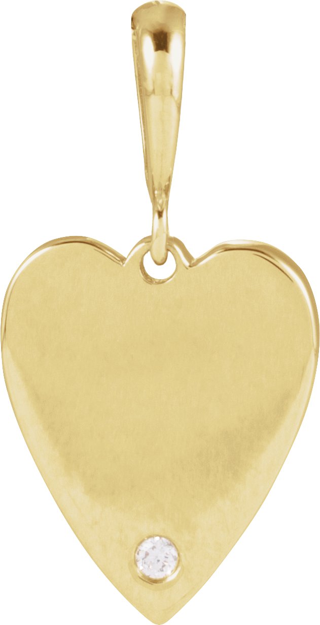 14K Yellow .01 CT Natural Diamond Engravable Heart Pendant