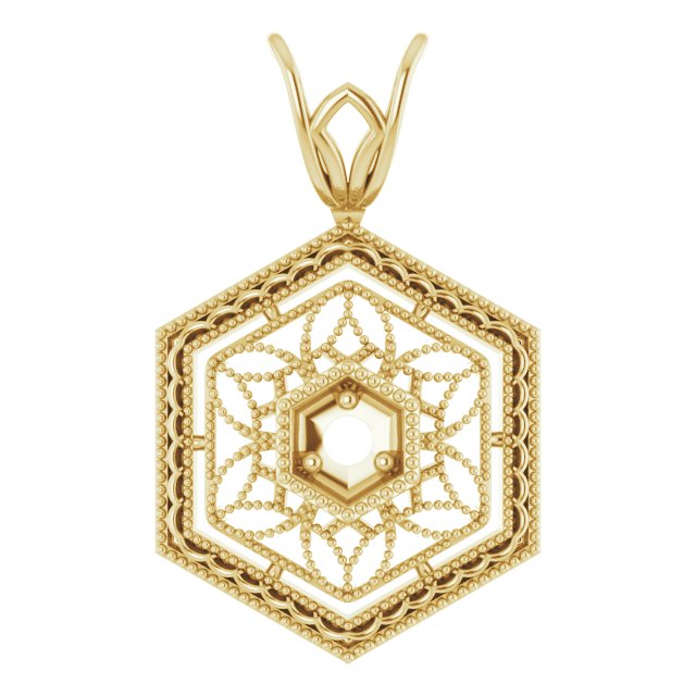 651493 / Pendant / Set / 14K Yellow / Round / Natural Diamond / 1.9Mm :: 0.025 Ct / I1, H+ / Polished / .0025 Ct Natural Diamond Filigree Pendant