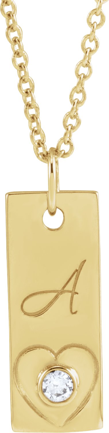14K Yellow .03 CT Natural Diamond Engravable Heart 16-18" Necklace