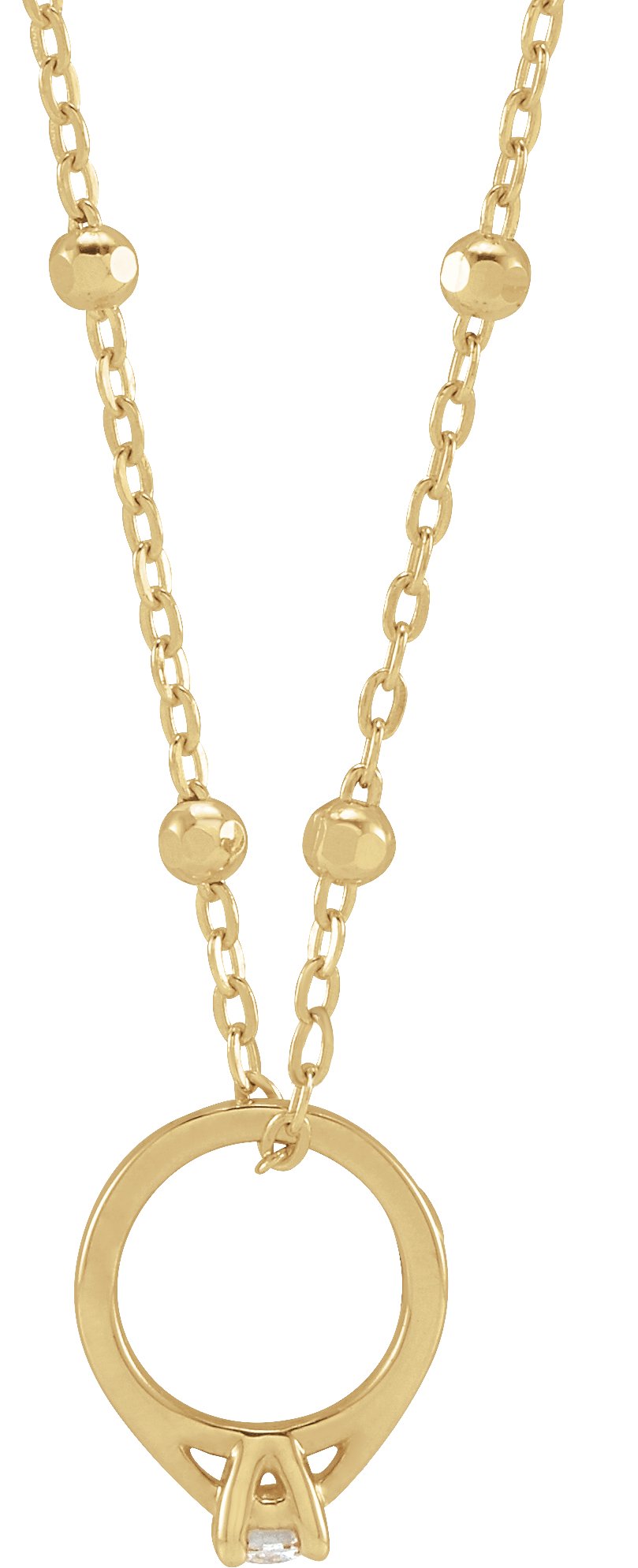 88024 / Necklace / Set / 14K Yellow / Round / Natural Diamond / 2Mm :: 0.03 Ct / I1, G-H / 18 In / Polished / .03 Ct Natural Diamond Solitaire Ring Necklace