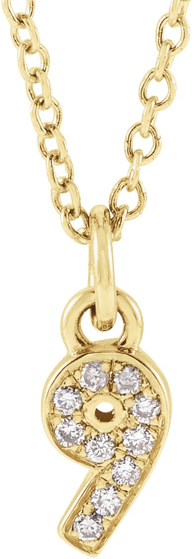 653718 / Necklace / Set / 14K Yellow / Numeral 9 / Natural Diamond / Round / .95 Mm / I1, H+ :: 0.04 Ctw / 16-18 In / Polished / .04 Ctw Natural Diamond Pave Petite Number Adjustable Necklace