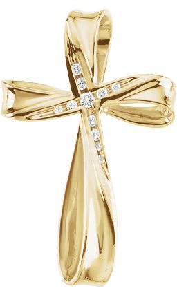 R41060 / Pendant / Set / 14K Yellow / Round / Natural Diamond / 1.7Mm :: 1/10 Ctw / Natural Diamond / Si1, G-H / Polished / 1/10 Ctw Natural Diamond Cross Pendant