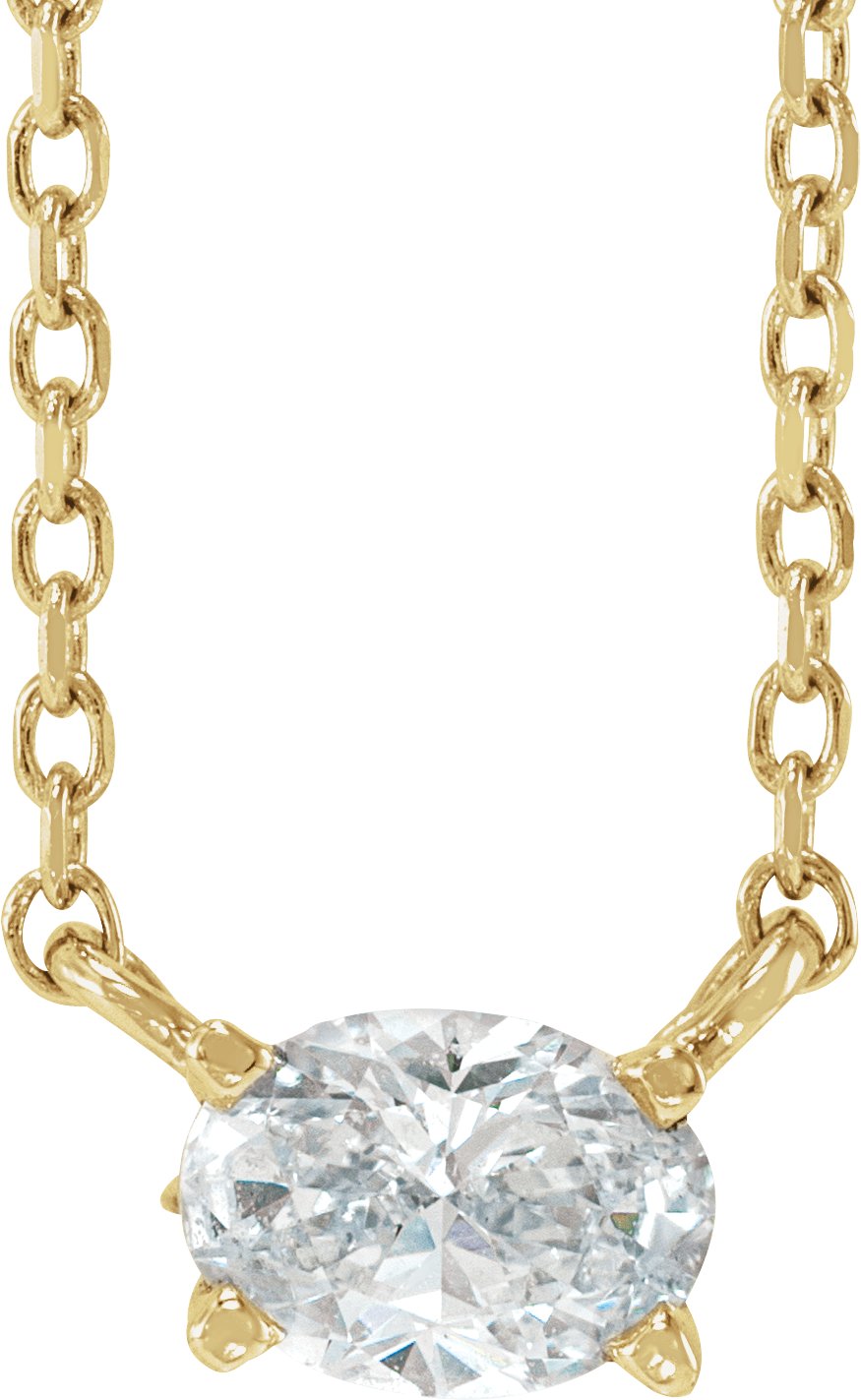 87572 / Necklace / Set / 14K Yellow / Oval / Lab-Grown Diamond / 6.2 X 4.3Mm :: 1/2 Ct / Si1-Si2, Gh / 16-18 In / Polished / 1/2 Ctw Lab-Grown Diamond Solitaire Necklace
