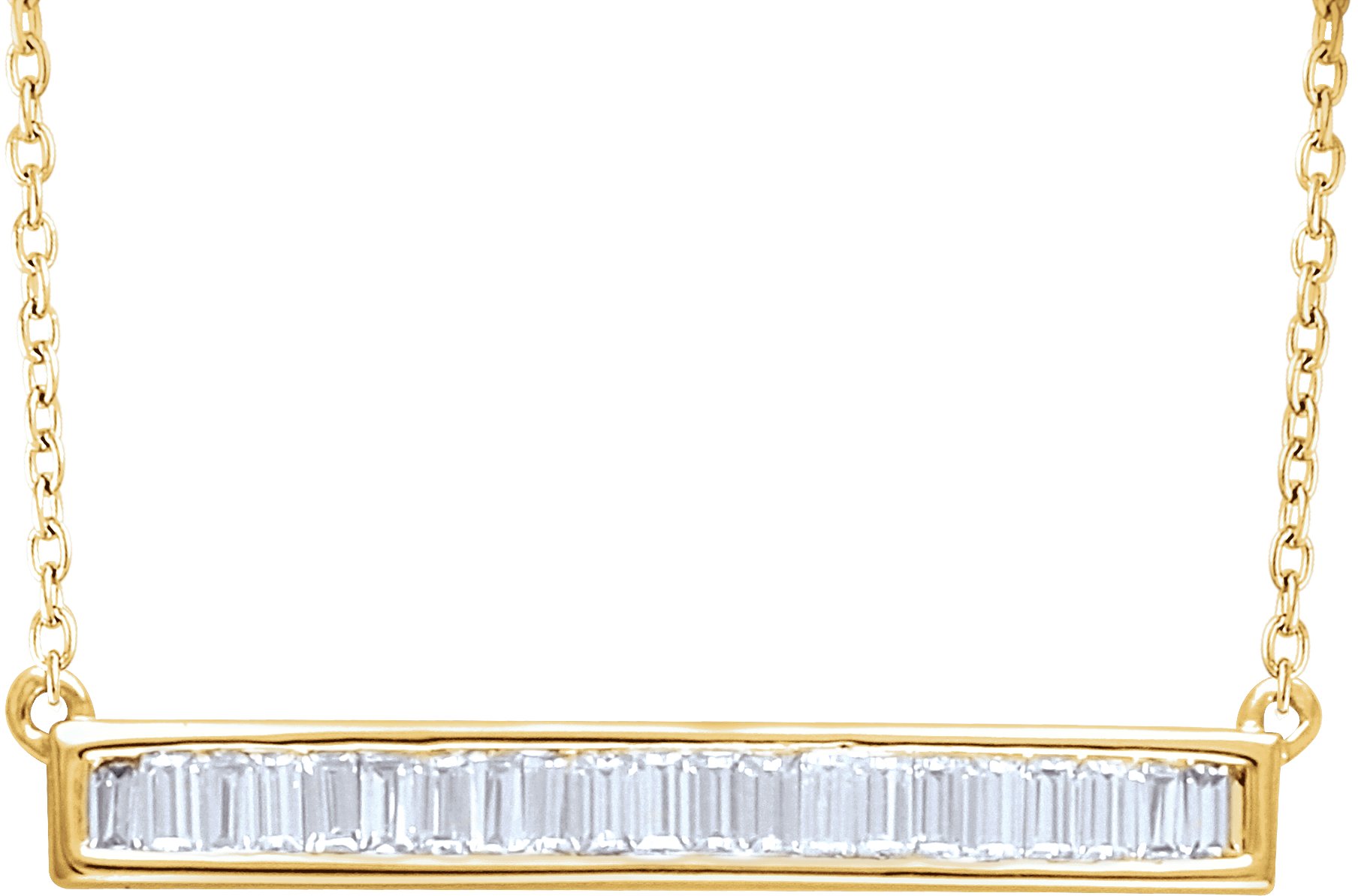 651885 / Necklace / 14K Yellow / Set / Natural Diamond / Straight Baguette / 2.2 X 1.2Mm :: 1/2 Ctw / I1, H+ / 18 X 4 Mm / Polished / 1/2 Ctw Natural Diamond Bar Necklace