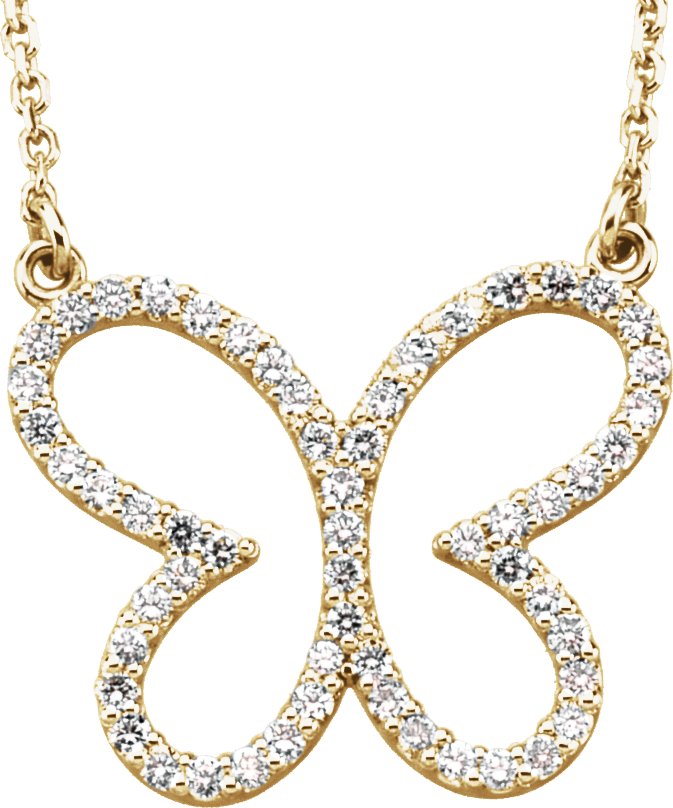 66437 / 14K Yellow / 1/4 Ctw Diamond Butterfly Necklace