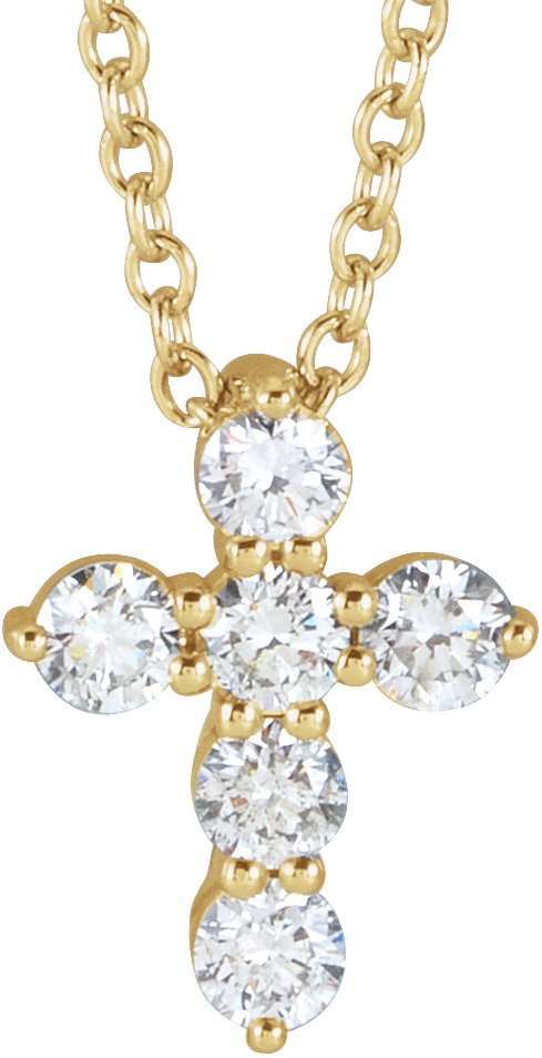 R42359 / Necklace / Set / 14K Yellow / Round / Lab-Grown Diamond / 10.2 X 7.9 Mm / 2.2Mm :: 1/4 Ctw / Si1-Si2, G-H / 16-18 In / Polished / 1/4 Ctw Lab-Grown Diamond Cross Necklace