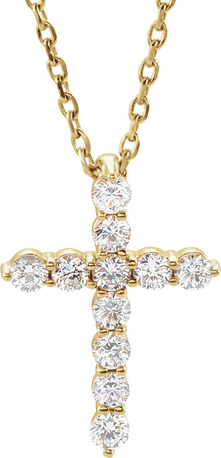 R42359 / Necklace / Set / 14K Yellow / Round / Natural Diamond / 14.6 X 10.5 Mm / 1.8Mm :: 1/4 Ctw / I1, G-H / 16-18 In / Polished / 1/4 Ctw Natural Diamond Cross Necklace
