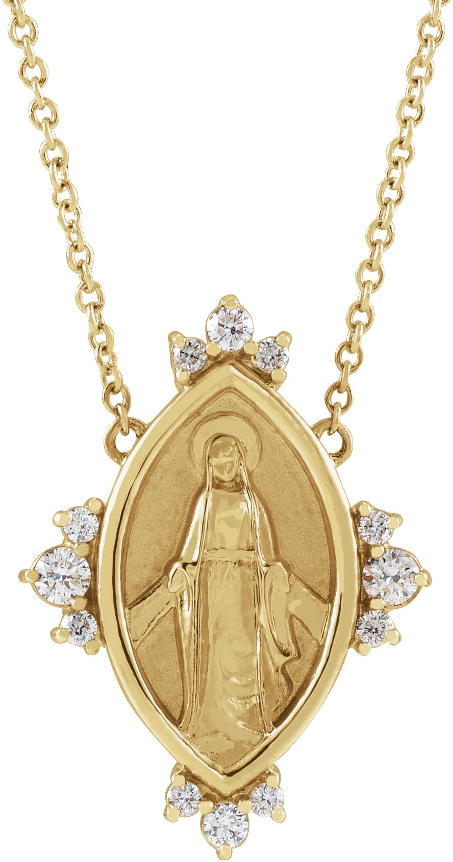 R45418 / Necklace / Set / 14K Yellow / Round / Natural Diamond / Natural Diamond / I1, G-H / 18 In / Polished / 1/5 Ctw Natural Diamond Miraculous Mary Necklace