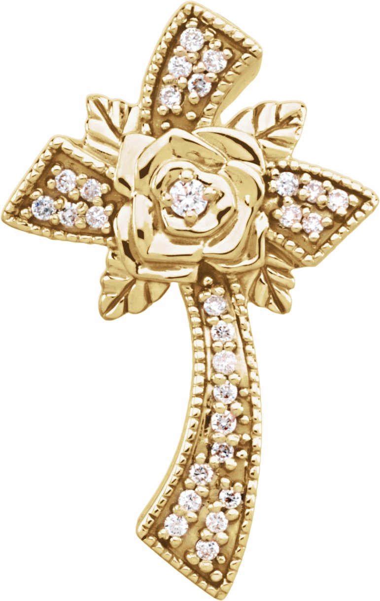 R42152 / Pendant / Set / 14K Yellow / Round / Natural Diamond / 1.7Mm :: 1/6 Ctw / Natural Diamond / I1, G-H / Polished / Floral Style Natural Diamond Cross