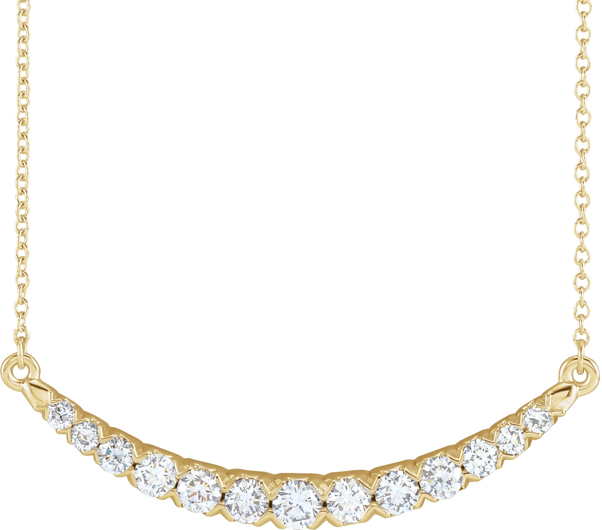 14K Yellow 3/4 CTW Lab-Grown Diamond French-Set Bar 18" Necklace