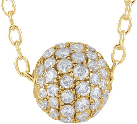 653709 / Necklace / Set / 14K Yellow / 6 Mm / 16-18 In / Polished / 3/8 Ctw Natural Diamond Pave Ball Necklace