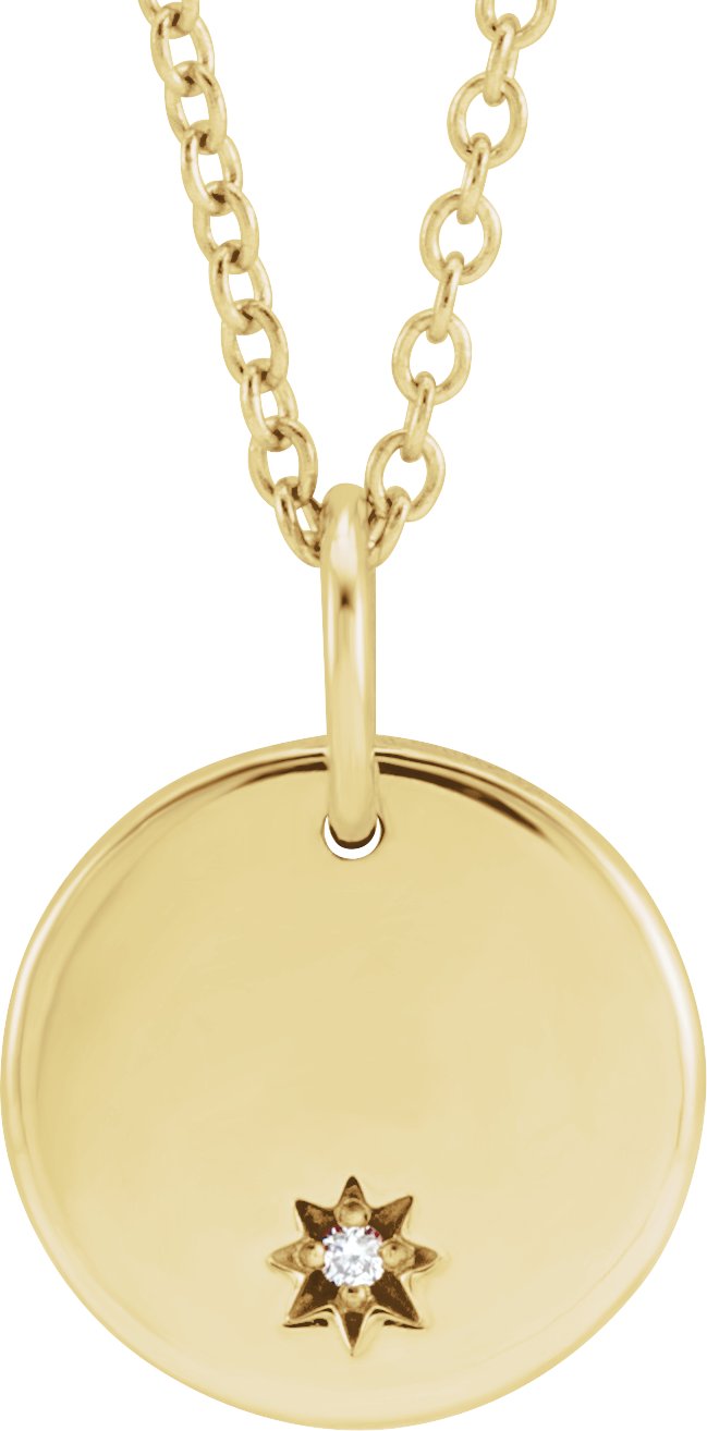 87241 / Necklace / Set / 14K Yellow / Round / Natural Diamond / 1Mm :: 0.005 Ct / I1, G-H / 16-18 In / Polished / Accented Circle Engravable Necklace