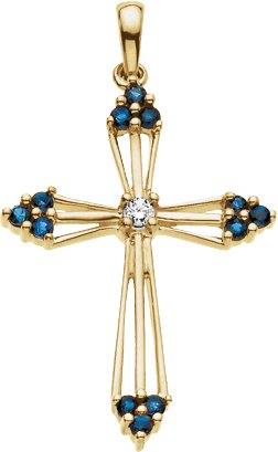 14K Yellow Natural Blue Sapphire & .04 CTW Natural Diamond Cross Pendant