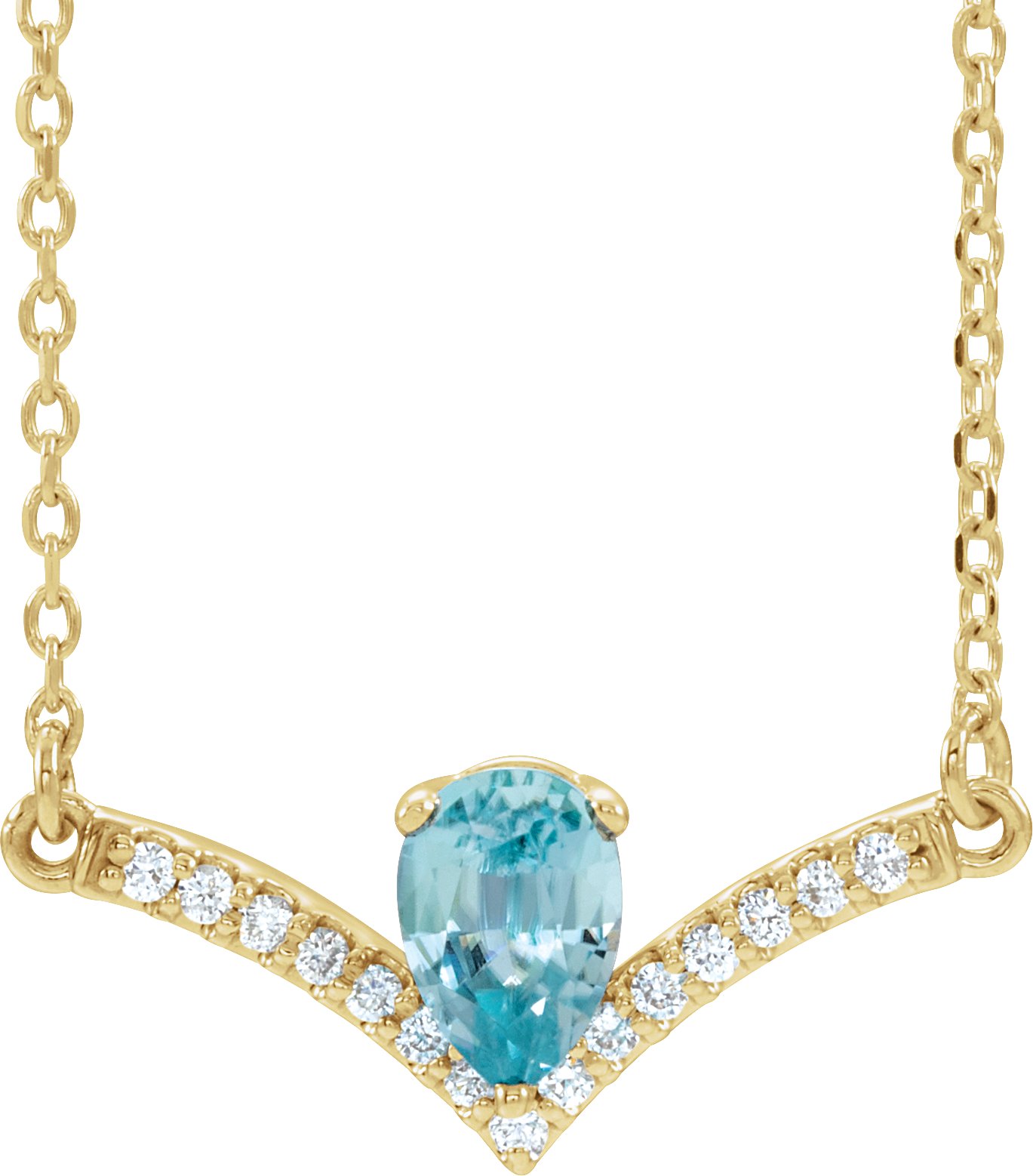 86814 / Necklace / Set / 14K Yellow / Pear / Natural Blue Zircon / 6 X 4Mm :: 0.06 Ctw / Natural Diamond / I1, G-H / 16 In / Polished / Natural Blue Zircon And .06 Ctw Natural Diamond Necklace