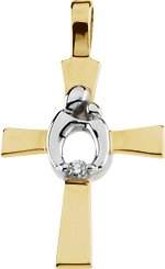 14K Yellow/White .01 CT Diamond Mother and Child® Cross Pendant