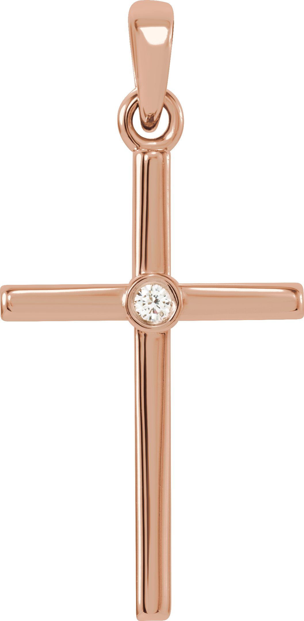 14K Rose .015 CT Natural Diamond Cross Pendant