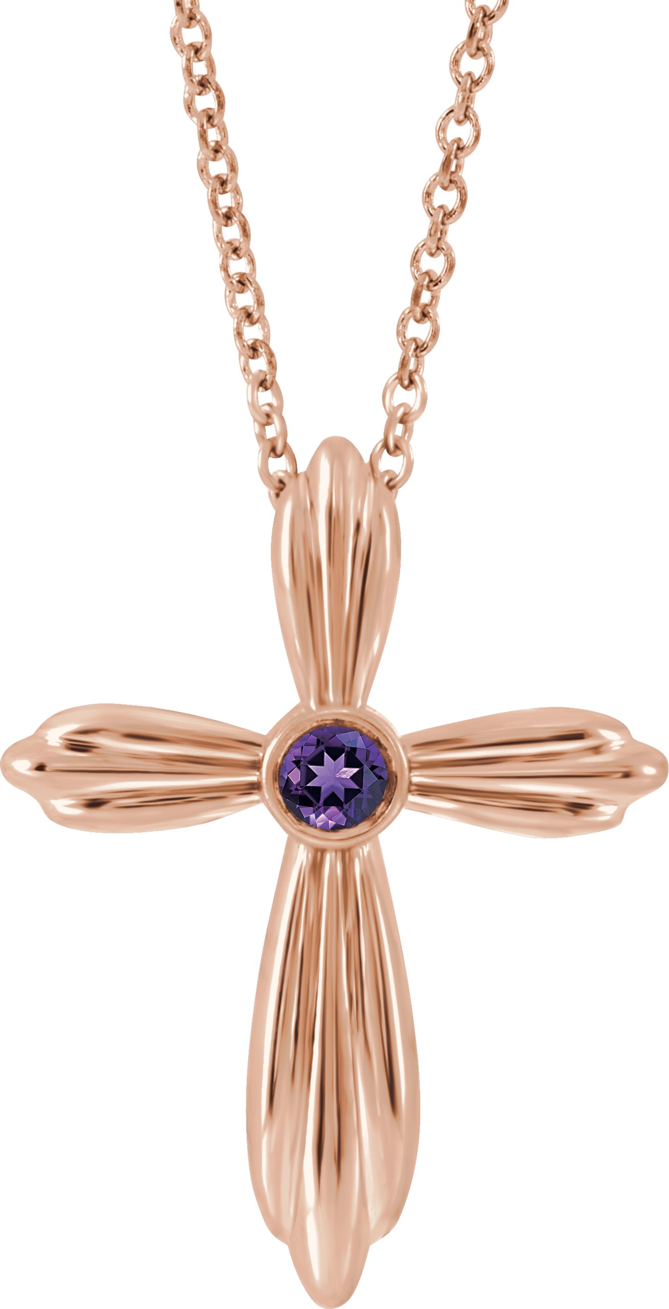 R42369 / Necklace / Set / 14K Rose / Round / Natural Amethyst / 2.5 Mm / 16-18 In / Polished / Natural Amethyst Cross Necklace