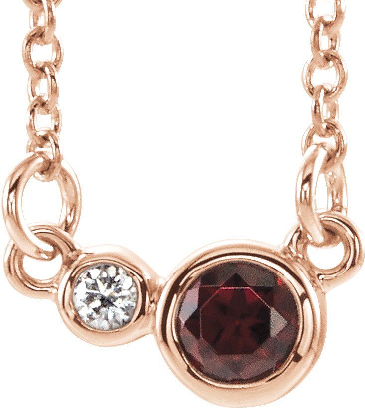 86793 / Necklace / Set / 14K Rose / Round / Natural Mozambique Garnet / 3Mm :: 0.02 Ct / I1, G-H / 18 In / Polished / Natural Garnet And .02 Ctw Natural Diamond Necklace