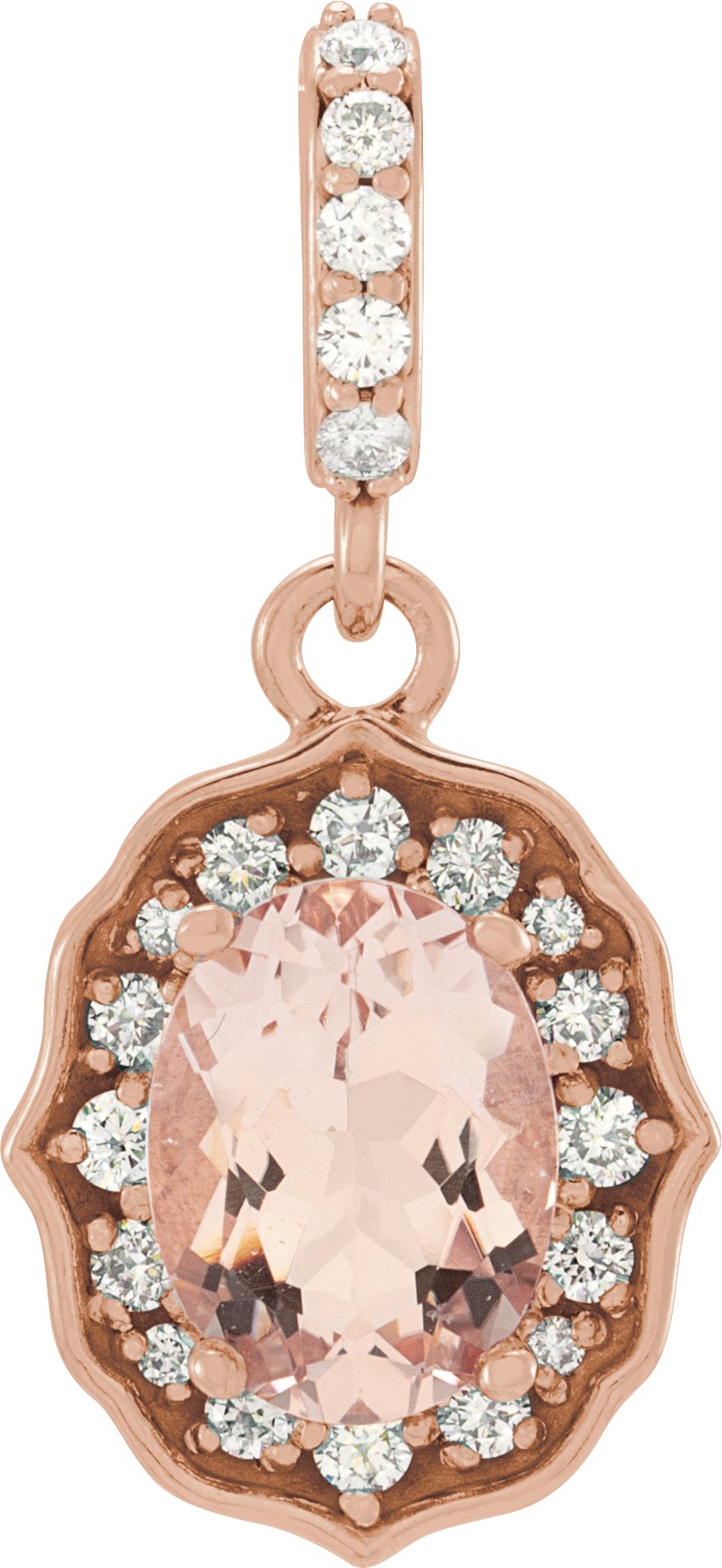 14K Rose Natural Peach Morganite & 1/6 CTW Natural Diamond Pendant
