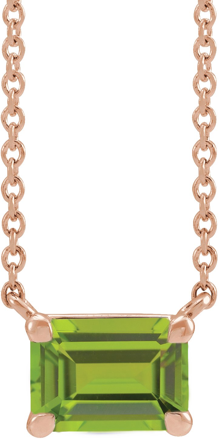 87178 / Necklace / Set / 14K Rose / Emerald / Natural Peridot / 5 X 3 Mm / 18 In / Polished / Natural Peridot Claw Prong Necklace