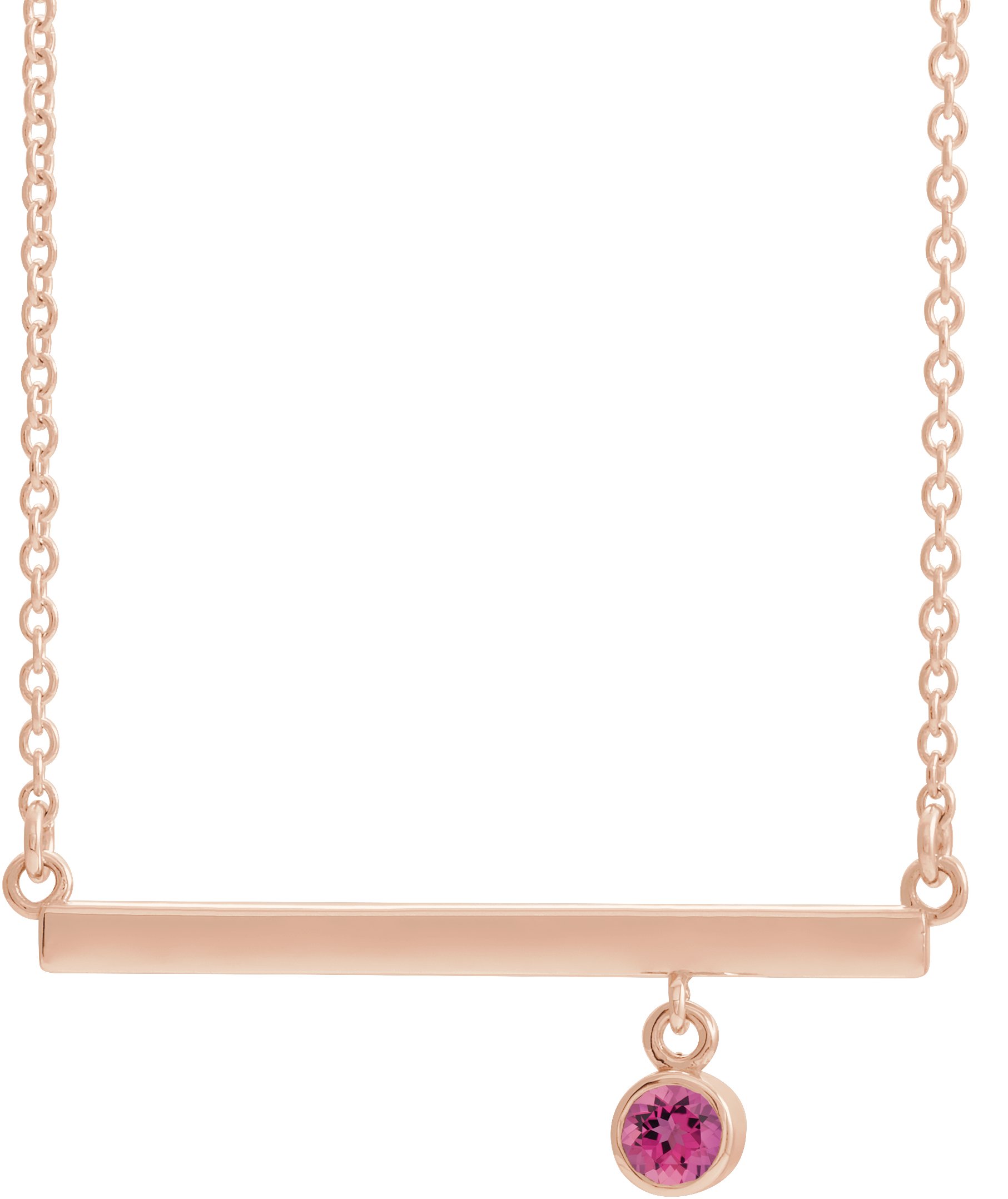 86905 / Necklace / Set / 14K Rose / Natural Pink Tourmaline / 27.3 X 5.2 Mm / 18 In / Polished / Natural Pink Tourmaline 18 In Bar Necklace