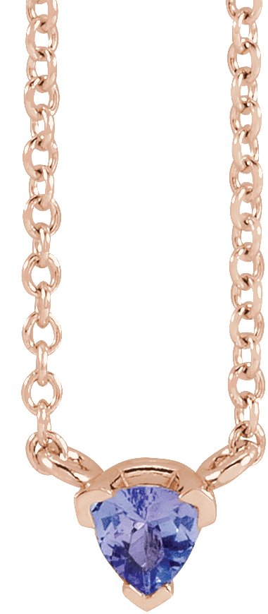 87555 / Necklace / Set / 14K Rose / Trillion / Natural Tanzanite / 4 X 4 X 4 Mm / 18 In / Polished / Natural Tanzanite V-Prong Necklace