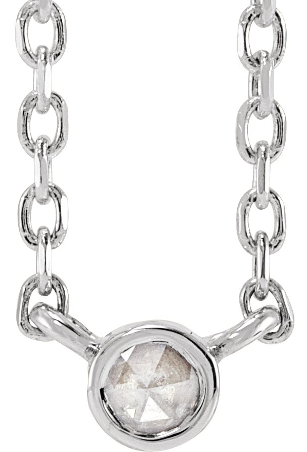 87613 / Necklace / Set / 14K White / Round / Natural Diamond / 2Mm :: 0.03 Ct / Vs/Si1, Ghi / 18 In / Polished / .03 Ctw Rosecut Natural Diamond Solitaire Bezel-Set Necklace