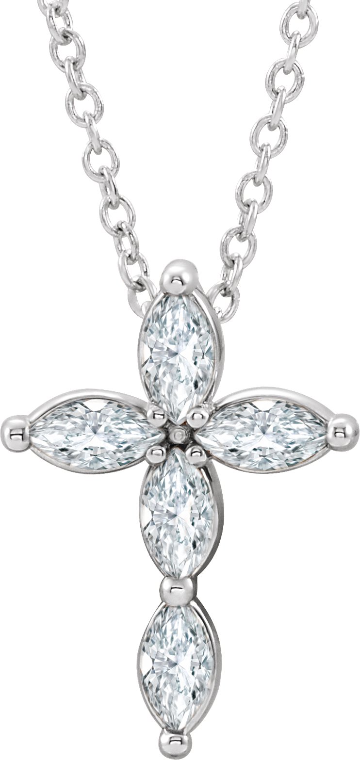 R42377 / Necklace / Set / 14K White / Marquise / Natural Diamond / 4 X 2Mm :: 1/3 Ctw / I1, Ghi / 16-18 In / Polished / 1/3 Ctw Natural Diamond Cross Necklace