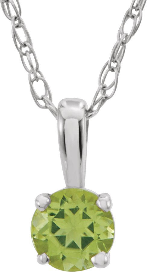 28393 / Necklace / Set / 14K White / Round / Imitation Peridot / 3 Mm / 14 In / Polished / Youth Birthstone Necklace