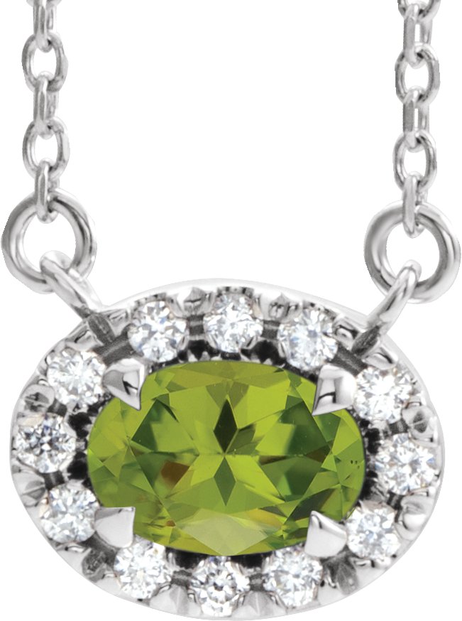 86979 / Necklace / Set / 14K White / Oval / Natural Peridot / 7 X 5Mm :: 1/6 Ctw / Natural Diamond / I1, G-H / 18 In / Polished / Natural Peridot And 1/6 Ctw Natural Diamond Necklace
