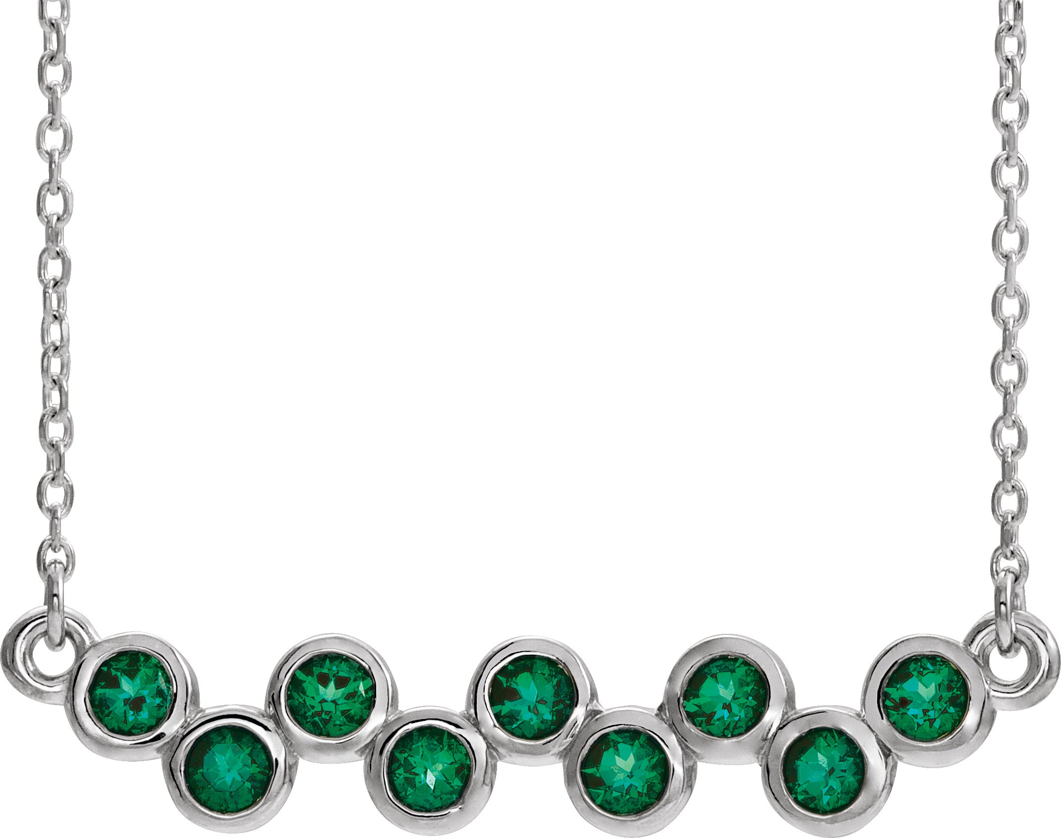 86525 / Necklace / Set / 14K White / Emerald / Polished / Genuine Emerald Bar Necklace