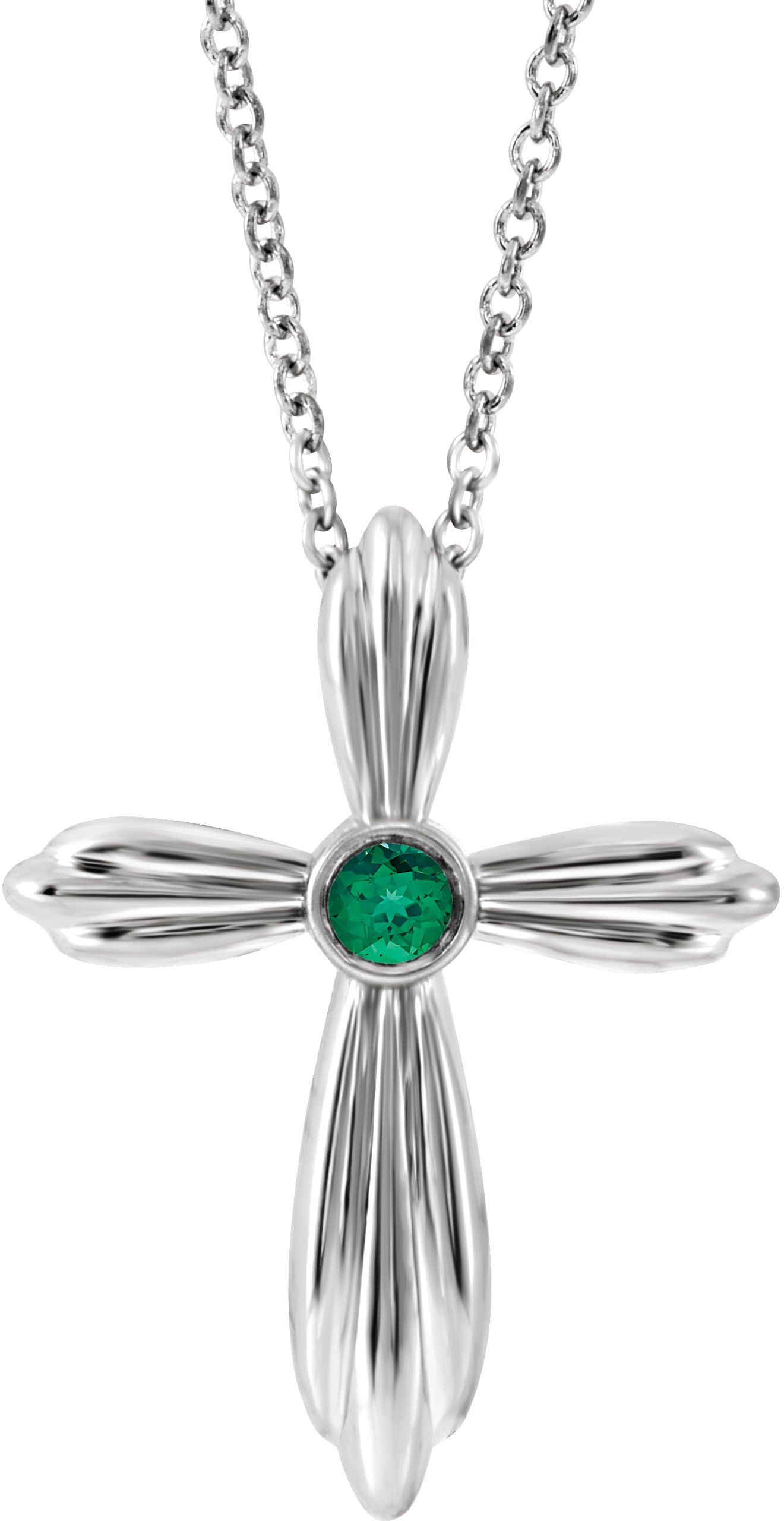R42369 / Necklace / Set / 14K White / Round / Natural Emerald / 2.5 Mm / 16-18 In / Polished / Lab-Grown Emerald Cross Necklace