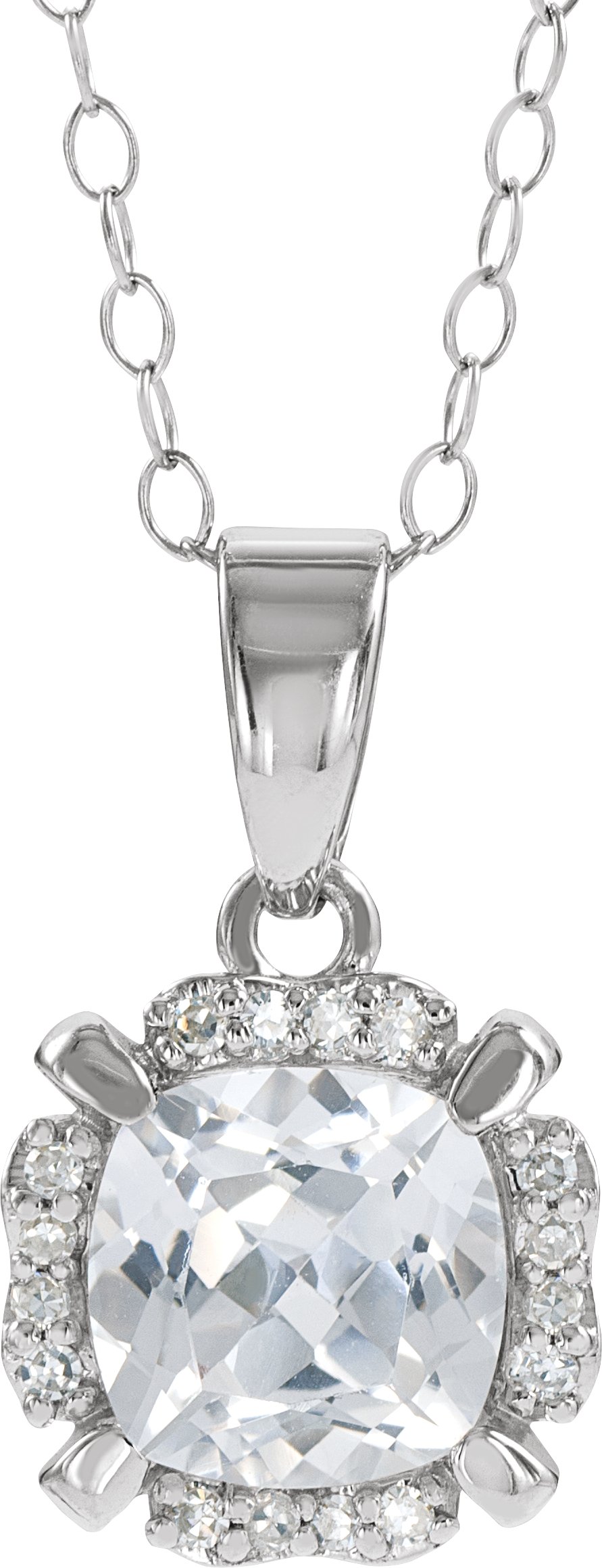 651953 / Necklace / Set / 14K White / Cushion / Lab-Grown White Sapphire / 6 X 6Mm :: 0.04 Ctw / Natural Diamond / I3, H-J / 18 In / Polished / Lab-Grown White Sapphire And .04 Ctw Natural Diamond Necklace