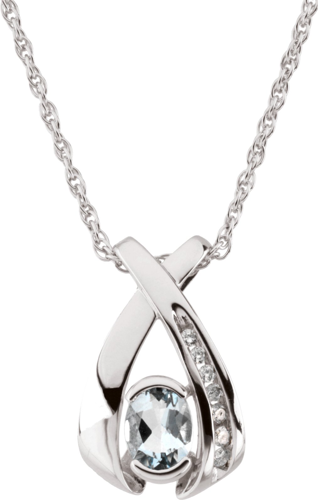 69045 / Necklace / Set / 14K White / Oval / Natural Aquamarine / 7 X 5Mm :: 0.08 Ctw / I1, G-H / 18 In / Polished / Natural Aquamaring And .08 Ctw Natural Diamond Necklace