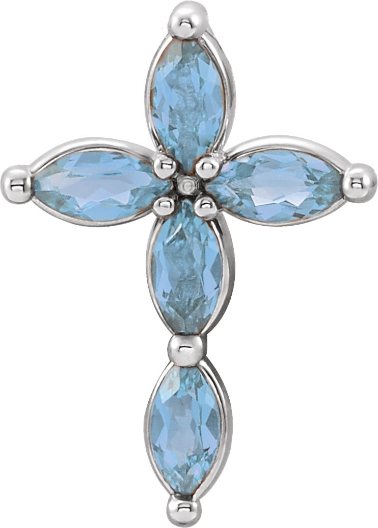 R42377 / Pendant / Set / 14K White / Natural Aquamarine / Marquise / 4 X 2 Mm / Polished / Natural Aquamarine Cross Pendant
