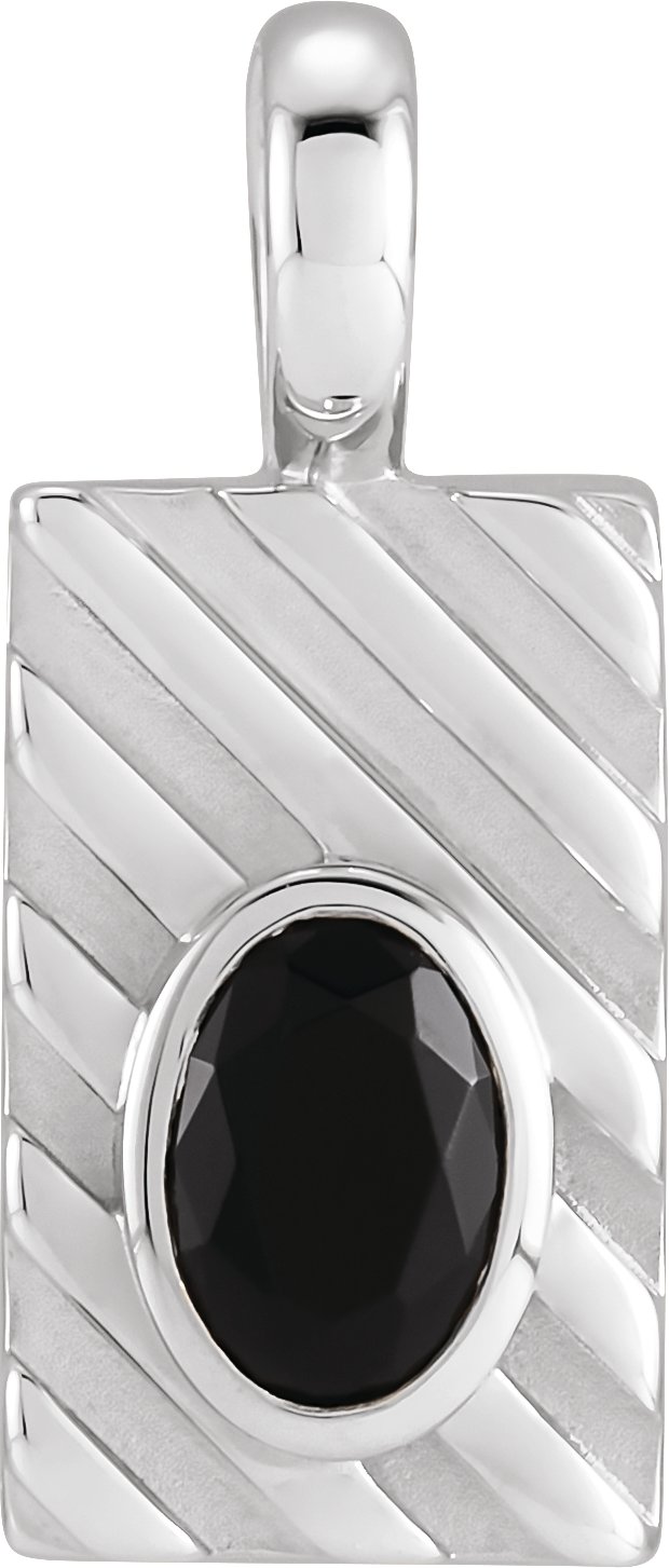 88122 / Pendant / Set / 14K White / Oval / Natural Black Onyx / 6 X 4 Mm / Polished / Black Onyx Mens Pendant