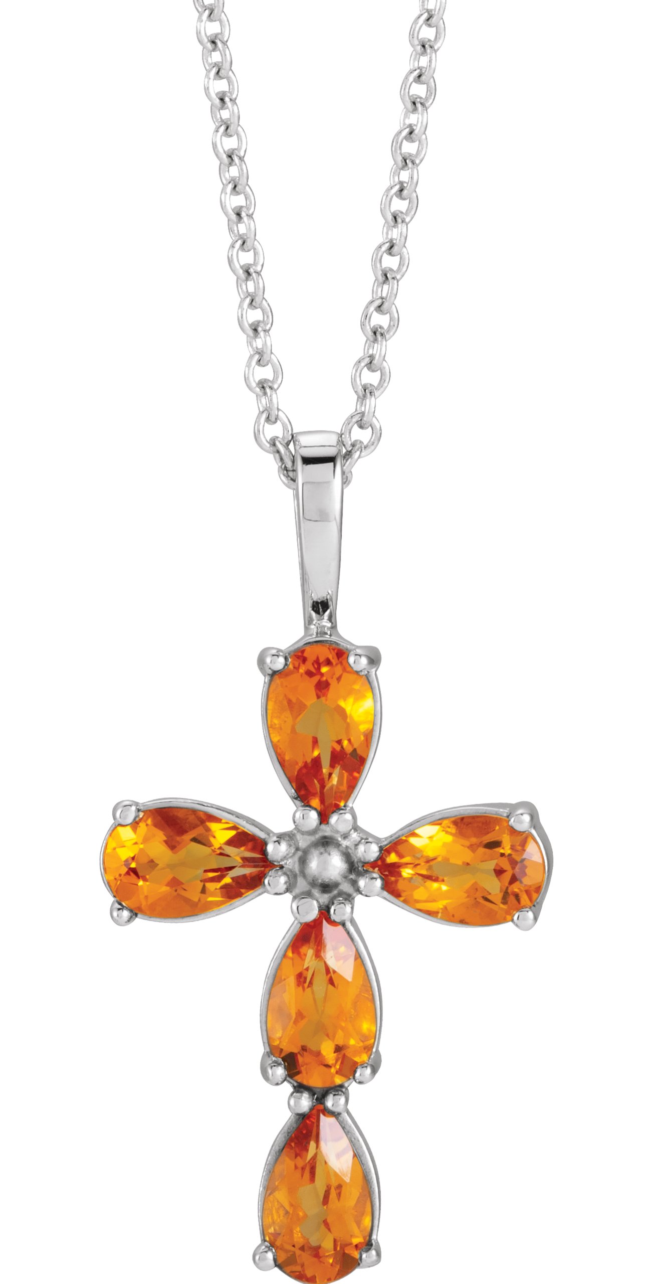 R42385 / Necklace / Set / 14K White / Pear / Natural Citrine / 5 X 3 Mm / 16-18 In / Polished / Natural Citrine Cross Necklace