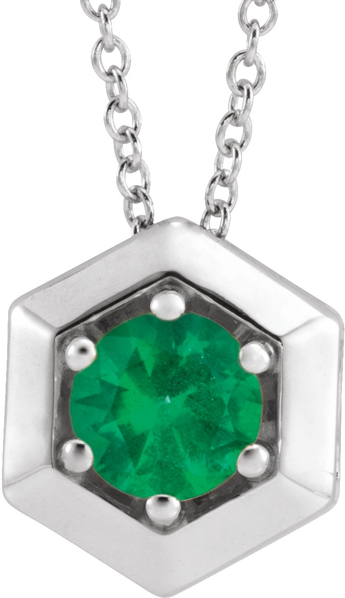 87125 / Necklace / Set / 14K White / Round / Natural Emerald / 5 Mm / 16-18 In / Polished / Natural Emerald Solitaire Geometric Necklace