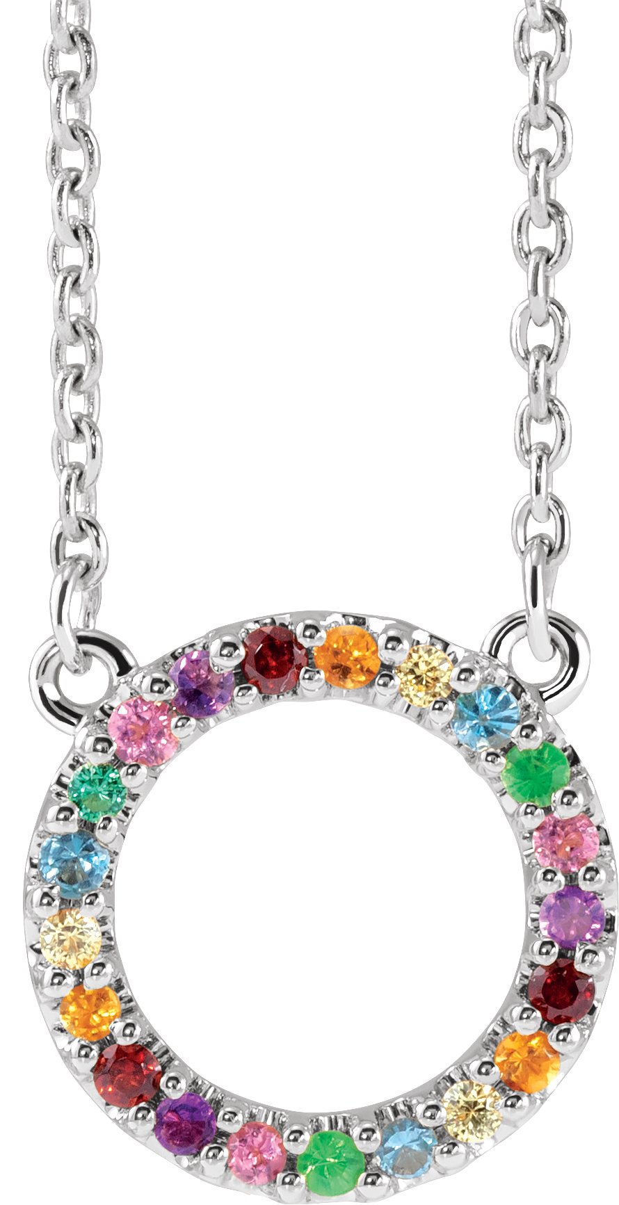 688934 / Necklace / Set / 14K White / Round / Natural Multi-Gemstone / 1 Mm / 16 In / Polished / Natural Multi-Gemstone Rainbow Circle Necklace