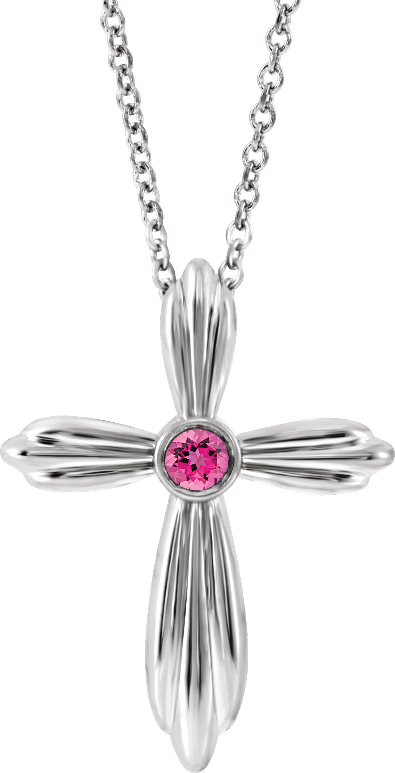 R42369 / Necklace / Set / 14K White / Round / Natural Pink Tourmaline / 2.5 Mm / 16-18 In / Polished / Natural Pink Tourmaline Cross Necklace