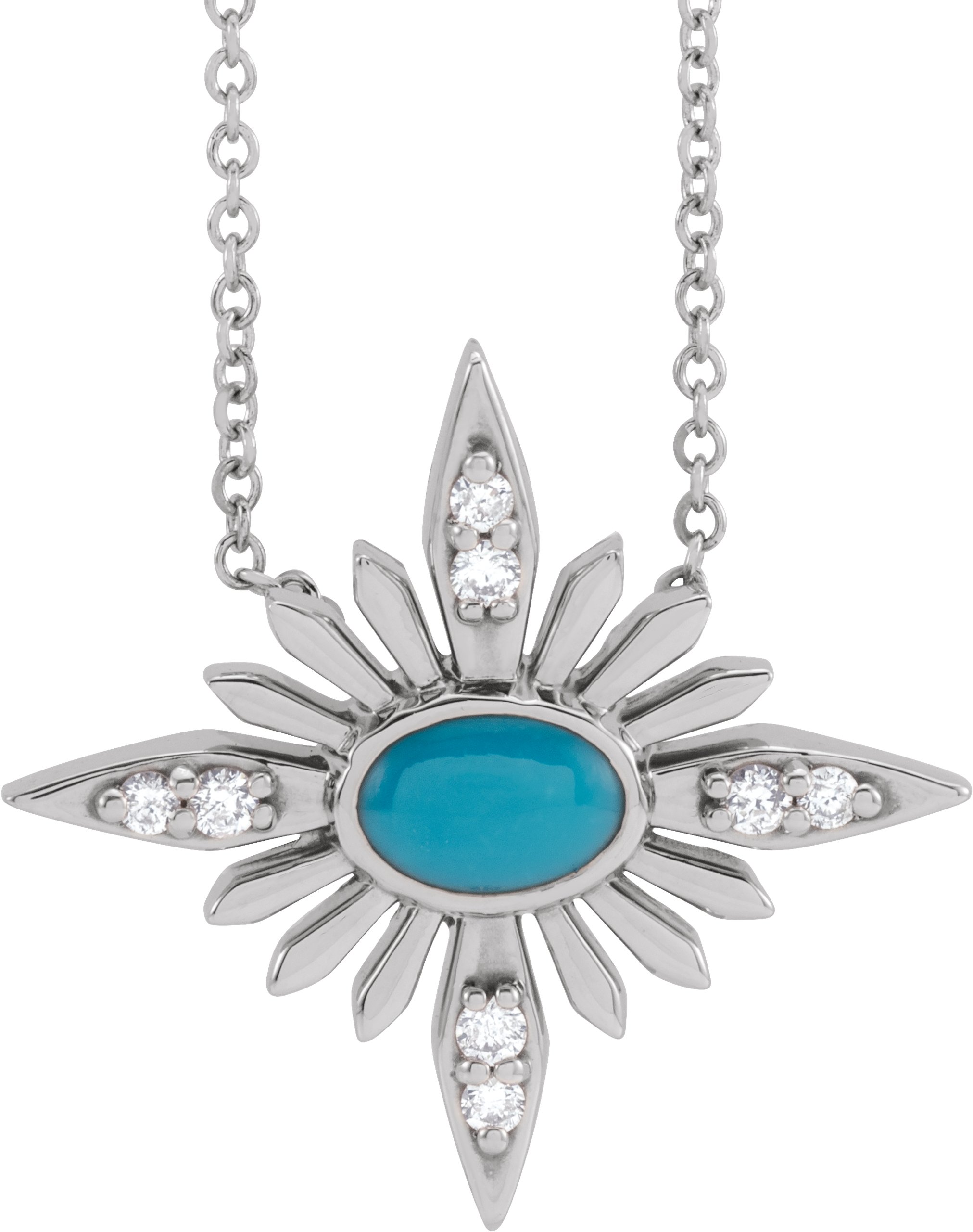 87041 / Necklace / Set / 14K White / Oval / Natural Turquoise / 6 X 4Mm :: 0.08 Ctw / Natural Diamond / I1, G-H / 16-18 In / Polished / Natural Turquoise And .08 Ctw Natural Diamond Necklace