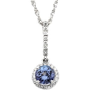 64011 / 14K White / 06.00 Mm/1/5 Ct Tw / Polished / Gen Tanzanite & Dia Pendant