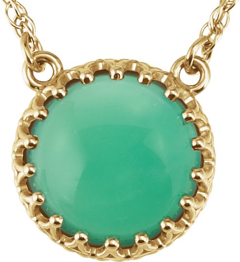 28344 / Necklace / Set / 14K Yellow / Round / Natural Green Chrysoprase / 10 Mm / 18 In / Polished / Crown Necklace