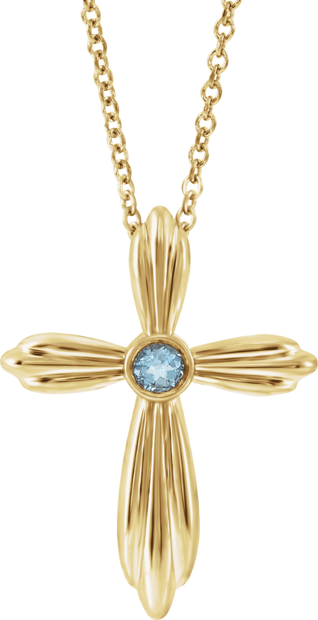 14K Yellow Aquamarine Cross 16-18" Necklace