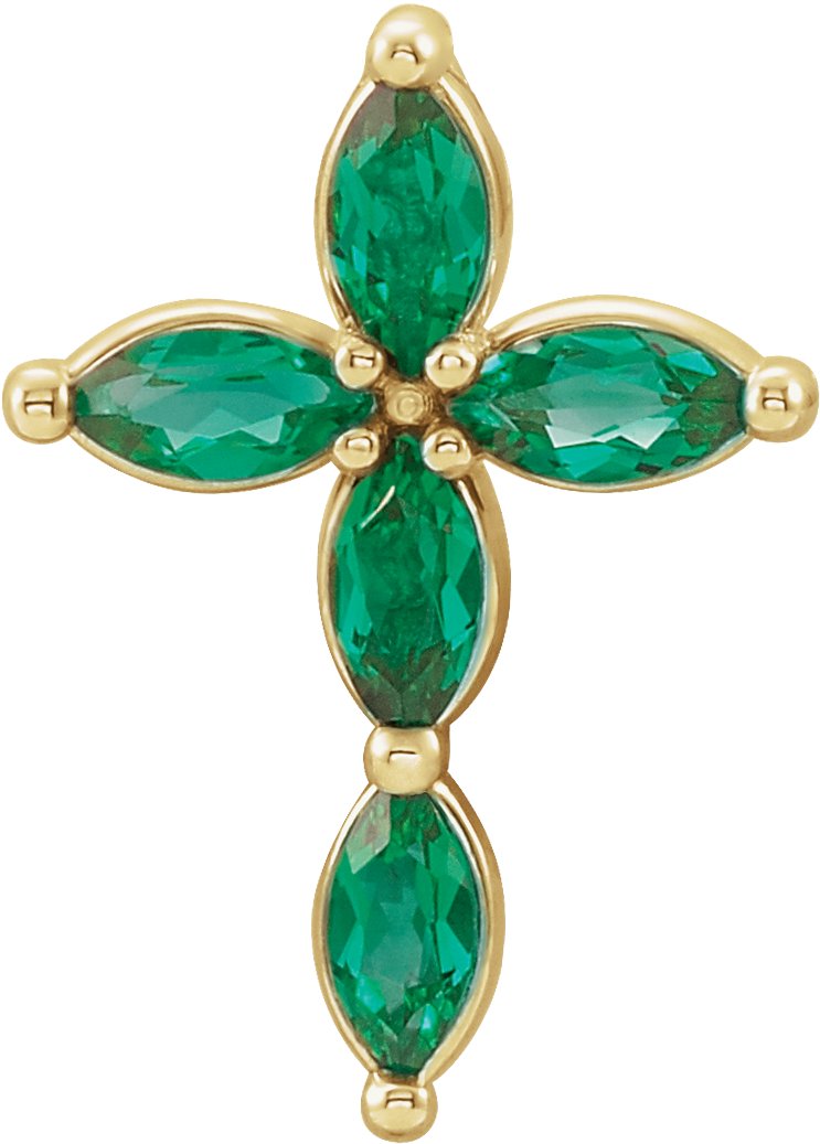 R42377 / Pendant / Set / 14K Yellow / Created Emerald / Marquise / 4 X 2 Mm / Polished / Chatham Created Emerald Cross Pendant