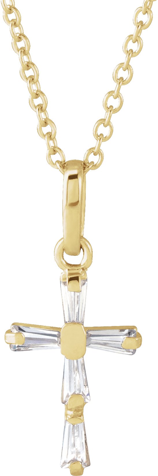 19615 / Necklace / Set / 14K Yellow / Tapered Baguette / Imitation White Cubic Zirconia / 3 X 1.5 Mm / 15 In / Polished / Cz Youth Cross Necklace