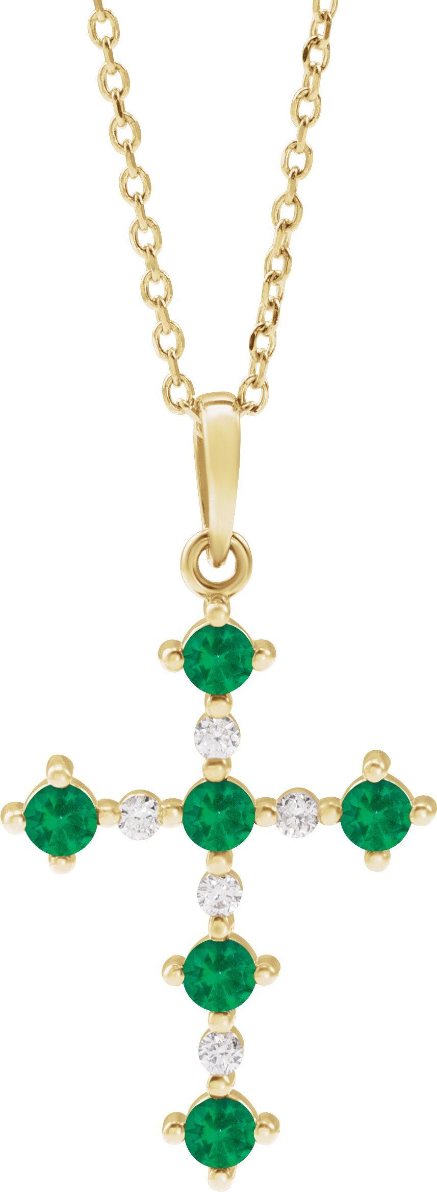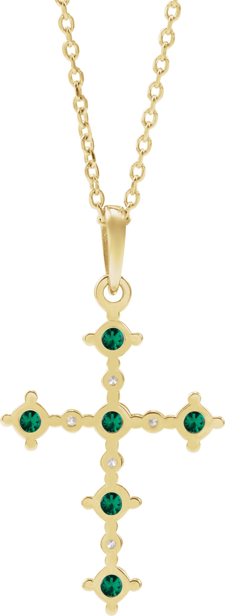 R50030 / Necklace / Set / 14K Yellow / Round / Lab-Grown Emerald / 2.5Mm :: 0.07 Ctw / Natural Diamond / I1, G-H / 16-18 In / Polished / Lab Grown Emerald And .07 Ctw Natural Diamond Cross Necklace