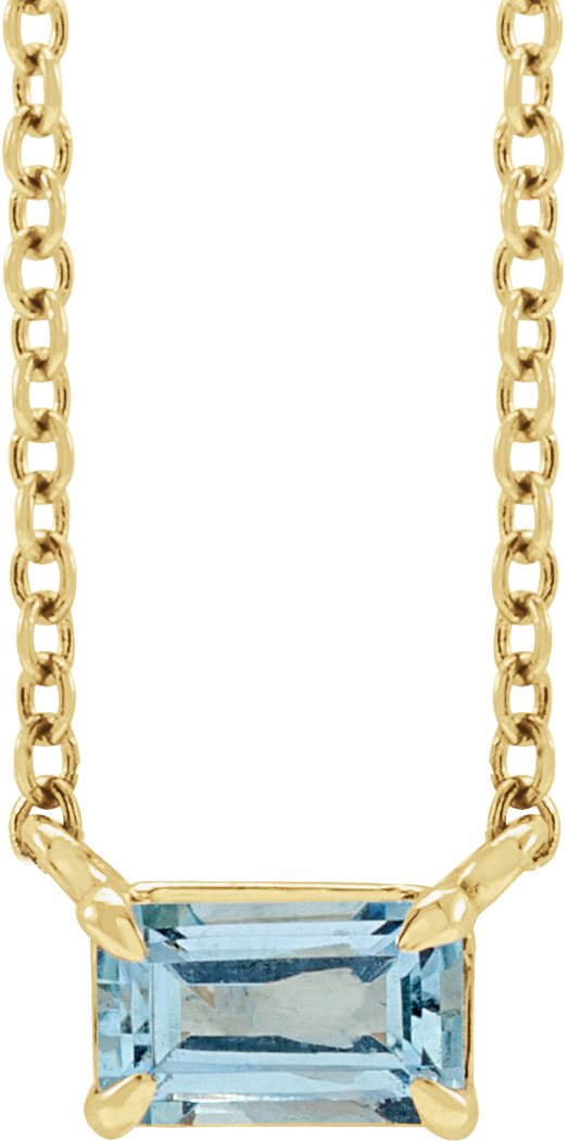 87178 / Necklace / Set / 14K Yellow / Emerald / Natural Aquamarine / 5 X 3 Mm / 18 In / Polished / Natural Aquamarine Claw-Prong Necklace