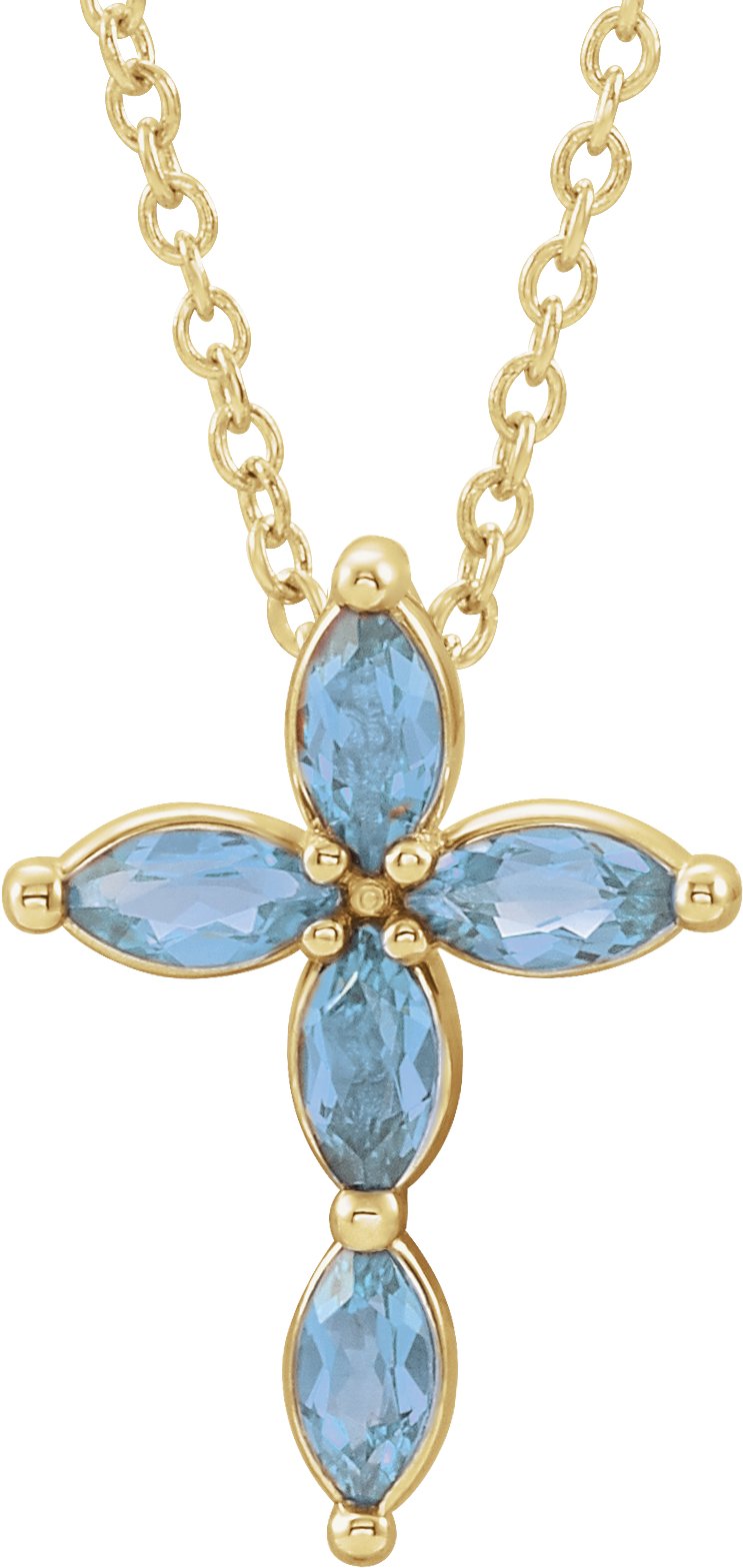 14K Yellow Natural Aquamarine Cross 16-18" Necklace